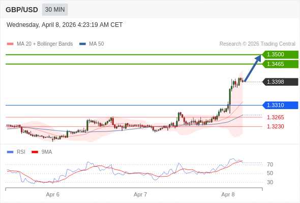 在 1.3310 之上,看涨,目标价位为 1.3465 ,然后为 1.3500 。