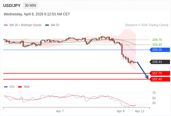在 159.15 之下,看跌,目标价位为 157.75 ,然后为 157.40 。