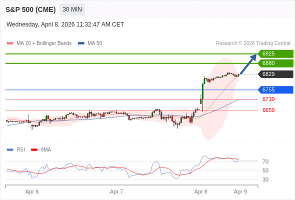 在 6755 之上,看涨,目标价位为 6880 ,然后为 6925 。