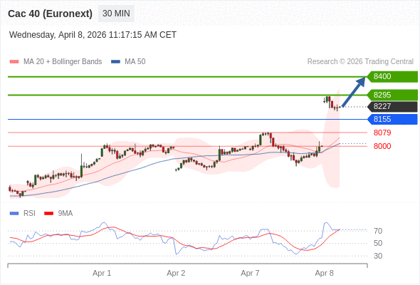 在 8155 之上,看涨,目标价位为 8295 ,然后为 8400 。