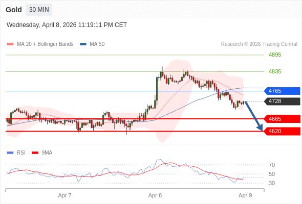 在 4765 之下,看跌,目标价位为 4665 ,然后为 4620 。