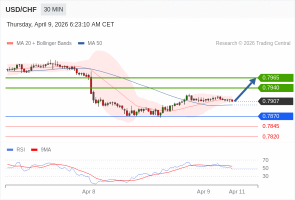 在 0.7870 之上,看涨,目标价位为 0.7940 ,然后为 0.7965 。