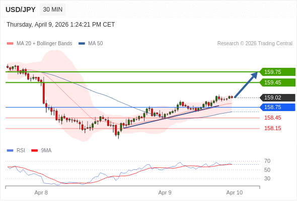 在 158.75 之上,看涨,目标价位为 159.45 ,然后为 159.75 。