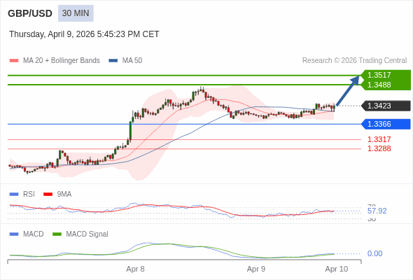 交易策略: 看涨,当 1.3366 为支撑位。