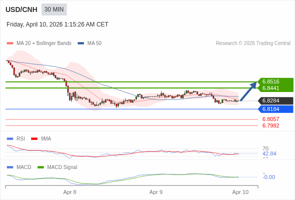 替代方案: 在6.8184以下,期待6.8057和6.7982。