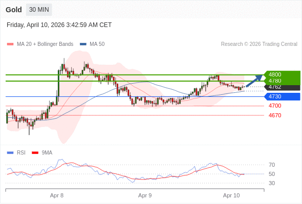 在 4730 之上,看涨,目标价位为 4780 ,然后为 4800 。