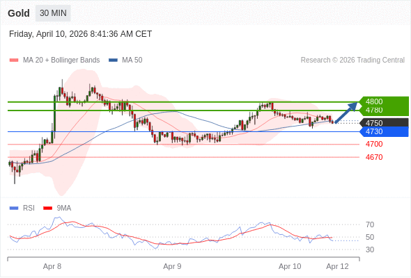 在 4730 之上,看涨,目标价位为 4780 ,然后为 4800 。