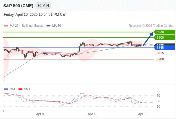 在 6845 之上,看涨,目标价位为 6900 ,然后为 6930 。