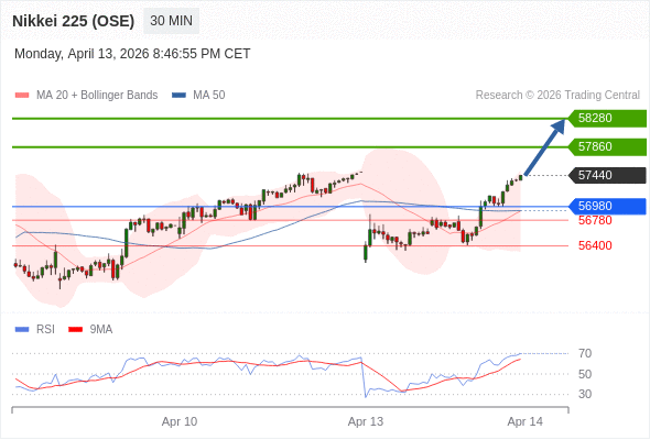 在 56980 之上,看涨,目标价位为 57860 ,然后为 58280 。