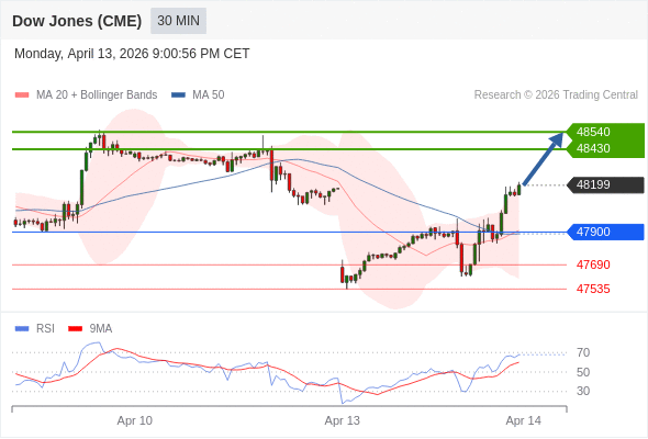 在 47900 之上,看涨,目标价位为 48430 ,然后为 48540 。