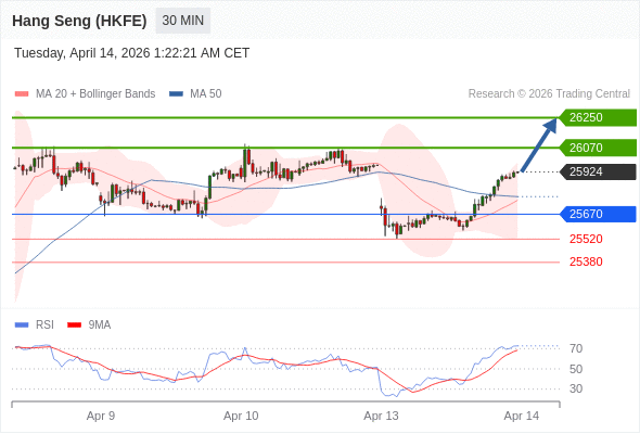 在 25670 之上,看涨,目标价位为 26070 ,然后为 26250 。
