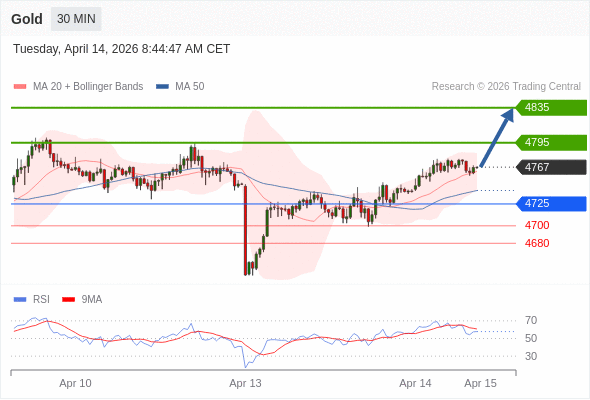 在 4725 之上,看涨,目标价位为 4795 ,然后为 4835 。