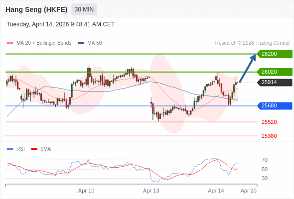 在 25680 之上,看涨,目标价位为 26020 ,然后为 26200 。