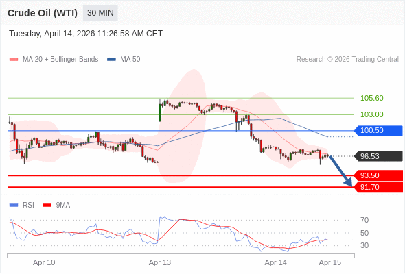 在 100.50 之下,看跌,目标价位为 93.50 ,然后为 91.70 。