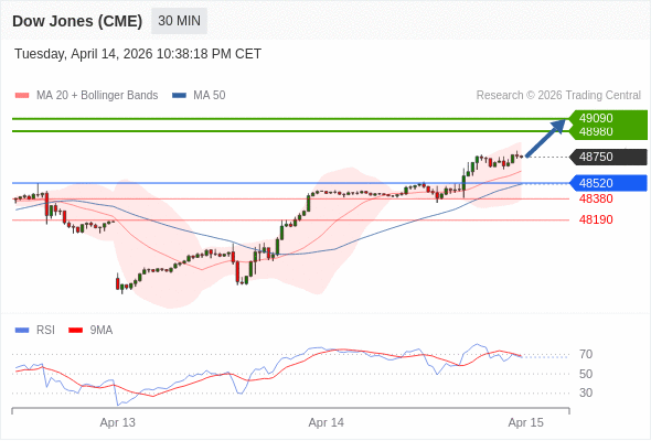 在 48520 之上,看涨,目标价位为 48980 ,然后为 49090 。