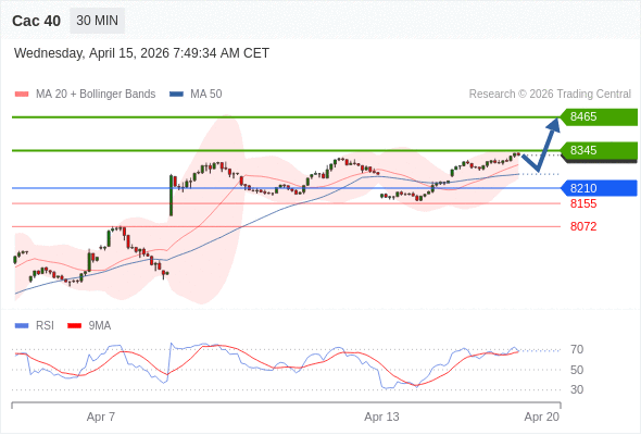 Cac 40 当日内: 期待8345。