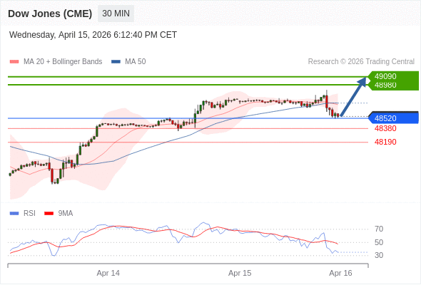 在 48520 之上,看涨,目标价位为 48980 ,然后为 49090 。