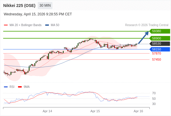 在 58150 之上,看涨,目标价位为 58900 ,然后为 59380 。