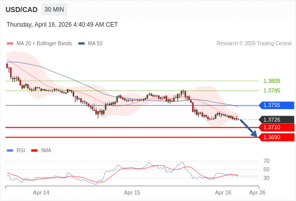在 1.3755 之下,看跌,目标价位为 1.3710 ,然后为 1.3690 。