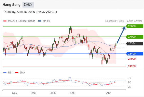 恒生指数 短线: 反弹向上。