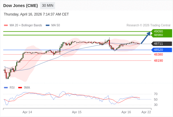 在 48520 之上,看涨,目标价位为 48980 ,然后为 49090 。
