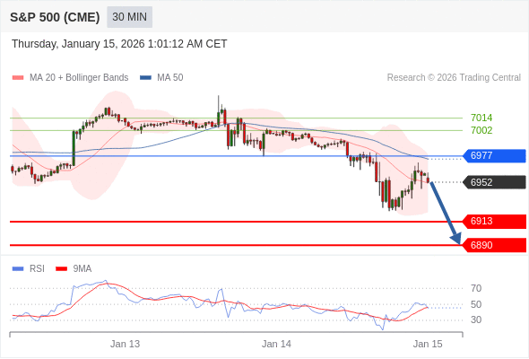 在 6977 之下,看跌,目标价位为 6913 ,然后为 6890 。