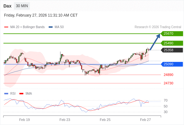 在 25090 之上,看涨,目标价位为 25490 ,然后为 25670 。
