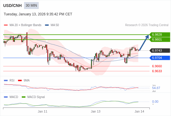 替代方案: 在6.9704以下,期待6.9660和6.9633。