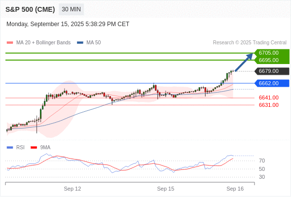 在 6662.00 之上,看涨,目标价位为 6695.00 ,然后为 6705.00 。
