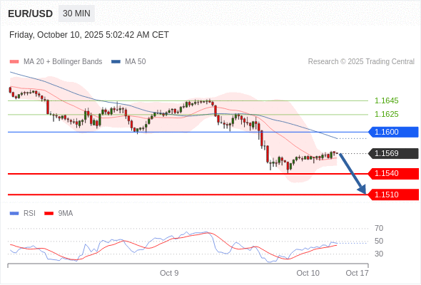 在 1.1600 之下,看跌,目标价位为 1.1540 ,然后为 1.1510 。