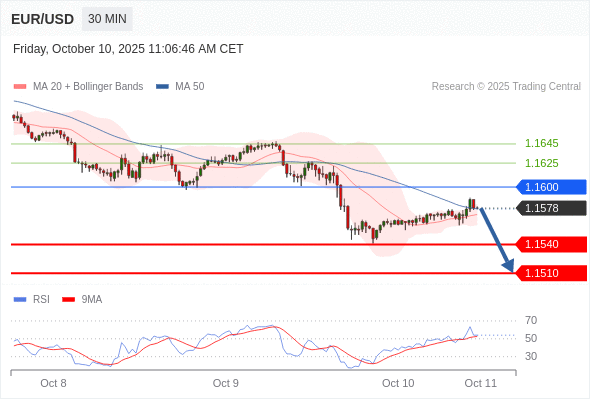 在 1.1600 之下,看跌,目标价位为 1.1540 ,然后为 1.1510 。