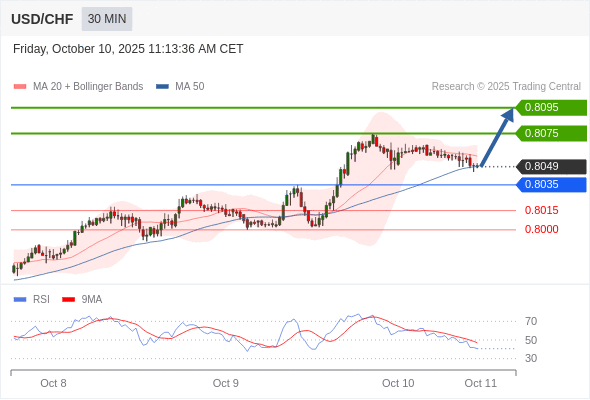 在 0.8035 之上,看涨,目标价位为 0.8075 ,然后为 0.8095 。