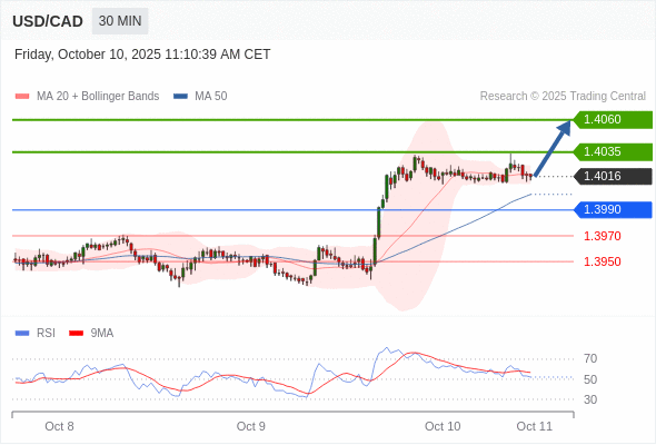 在 1.3990 之上,看涨,目标价位为 1.4035 ,然后为 1.4060 。
