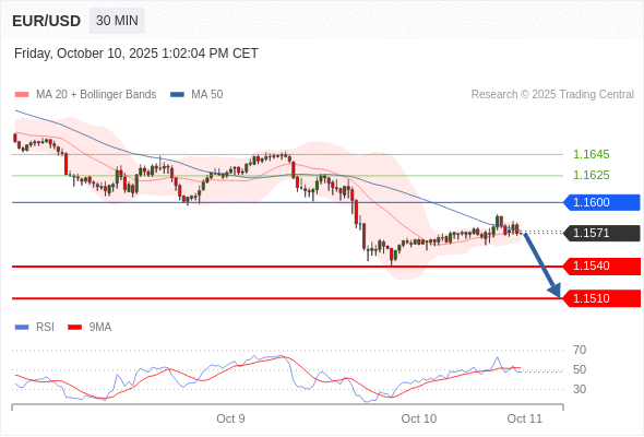在 1.1600 之下,看跌,目标价位为 1.1540 ,然后为 1.1510 。