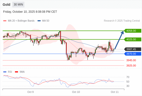 在 3970.00 之上,看涨,目标价位为 4025.00 ,然后为 4058.00 。