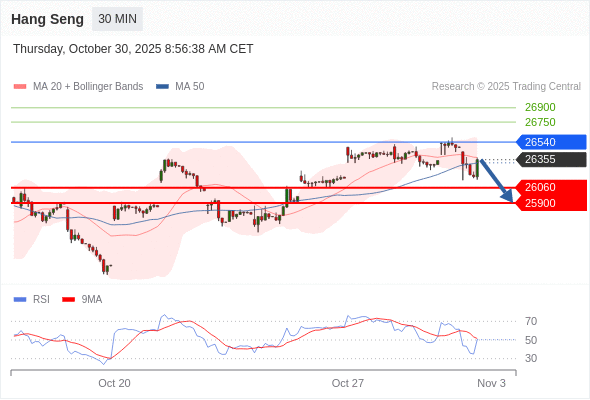 恒生指数 当日内: 短期调整。