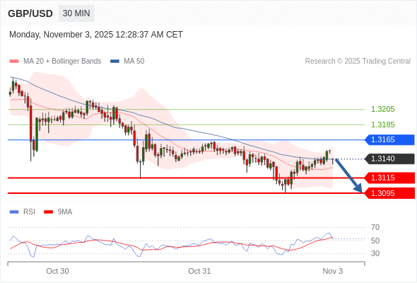 在 1.3165 之下,看跌,目标价位为 1.3115 ,然后为 1.3095 。