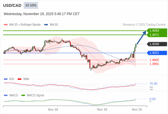 交易策略: 看涨,当 1.4021 为支撑位。