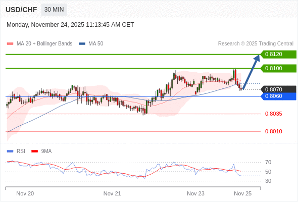 在 0.8060 之上,看涨,目标价位为 0.8100 ,然后为 0.8120 。