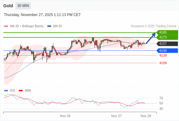 在 4140 之上,看涨,目标价位为 4173 ,然后为 4185 。