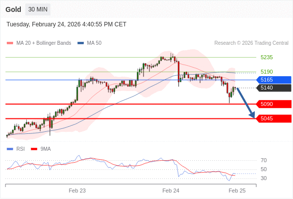 在 5165 之下,看跌,目标价位为 5090 ,然后为 5045 。
