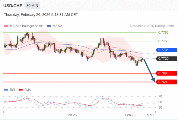 在 0.7735 之下,看跌,目标价位为 0.7695 ,然后为 0.7680 。