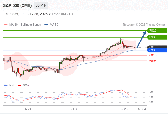 在 6935 之上,看涨,目标价位为 6985 ,然后为 7010 。