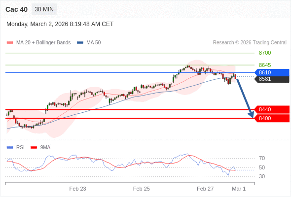 Cac 40 当日内: 反转向下。