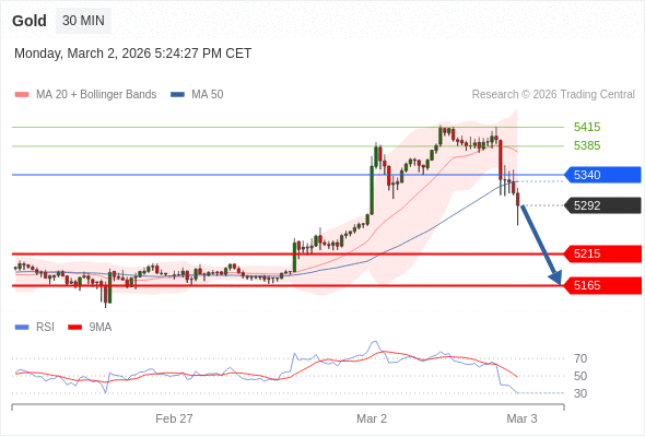 在 5340 之下,看跌,目标价位为 5215 ,然后为 5165 。