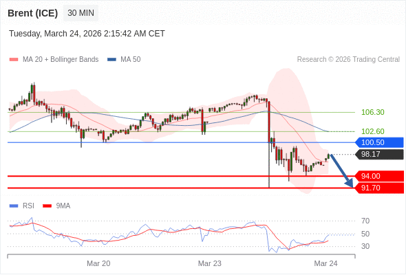交易策略: 在 100.50 之下,看跌,目标价位为 94.00 ,然后为 91.70 。