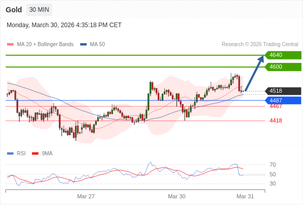 在 4487 之上,看涨,目标价位为 4600 ,然后为 4640 。