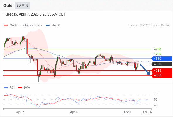 在 4680 之下,看跌,目标价位为 4615 ,然后为 4590 。