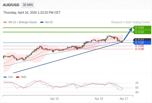 在 0.7160 之上,看涨,目标价位为 0.7210 ,然后为 0.7230 。